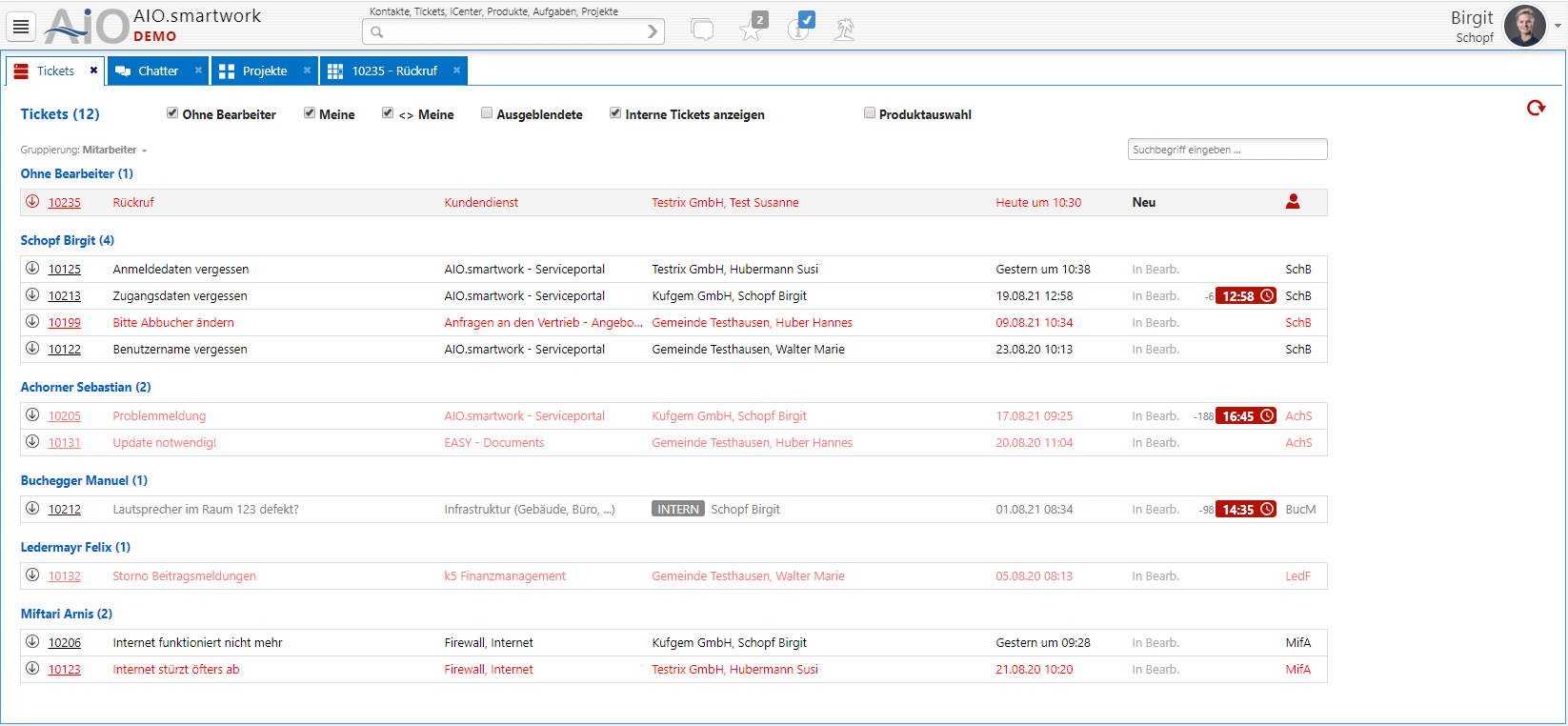 Verlagern Sie Anfragen direkt in ein integriertes Ticketsystem. So optimieren Sie Ihr Serviceangebot und haben alle notwendigen Informationen auf einen Blick verfügbar. Die Zuständigkeiten sind mit AIO.smartwork sowohl für das Personal als auch für die Kundschaft direkt einsehbar.